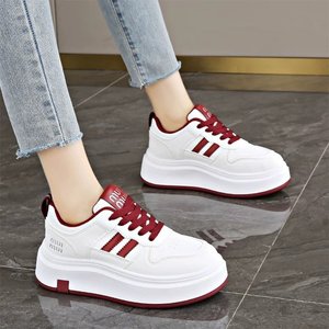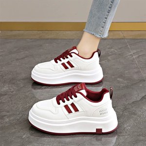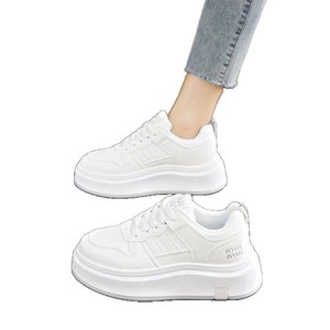 学院の風の厚い底の百合の白い靴の女性の2025春の新型の丸い頭のカジュアルな靴の韓国版の皮の板の靴の卸売り