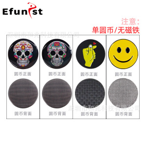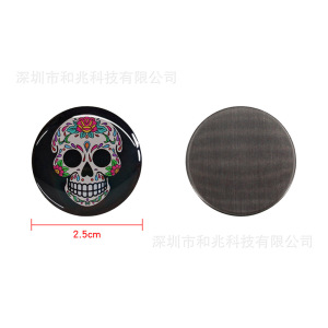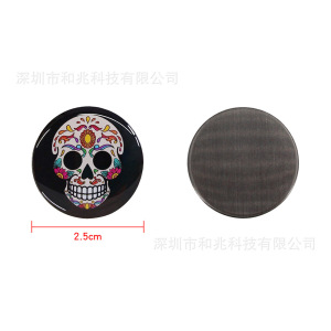 黒いスカル模様、シングル、丸いコイン、磁石なし