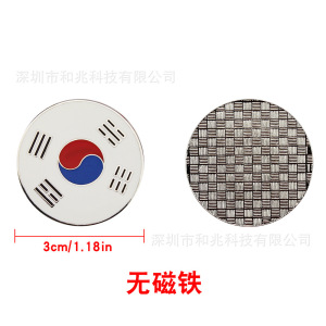 30mm 韓国国旗 シングルラウンドコイン マグネットなし