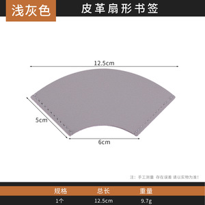 ライトグレーの革製の小さな扇形のしおり