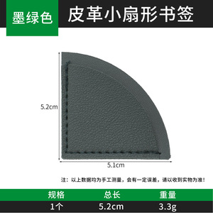 ダークグリーンの革製の小さな扇形のしおり