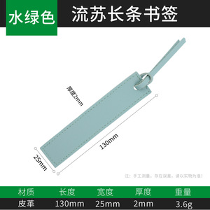 アクアグリーンレザータッセルロングブックマーク