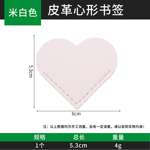 オフホワイトのレザーのハート型ブックマーク