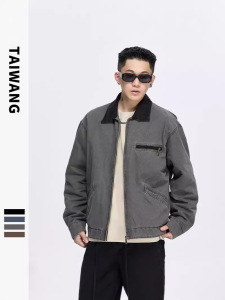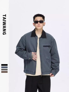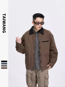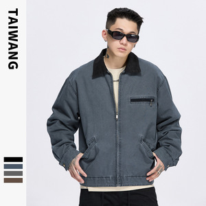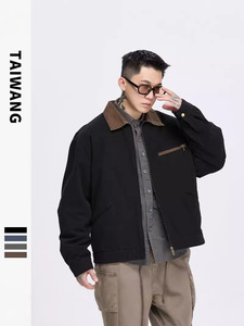 男性春と秋のアメリカのレトロなデトロイトのジャケットのカハトの工装春と秋の男性のキャンバスの襟をめくる水洗いのコートの男性