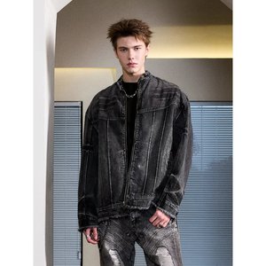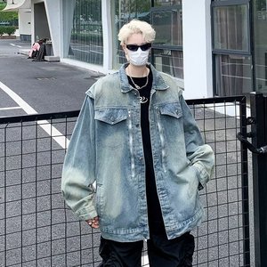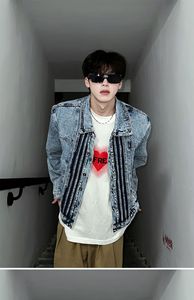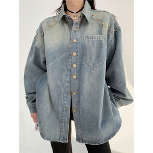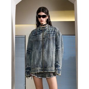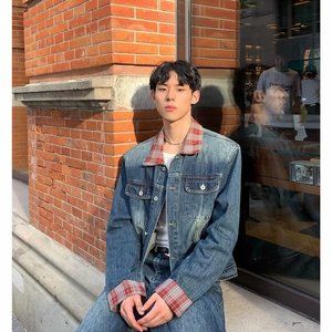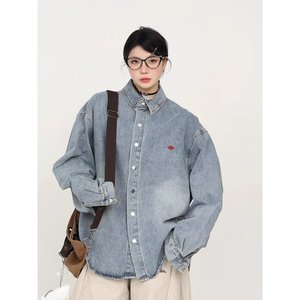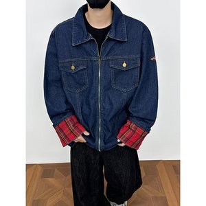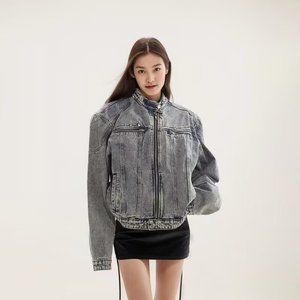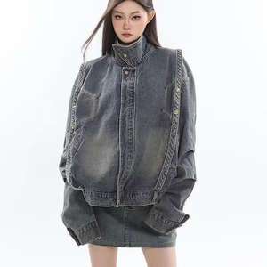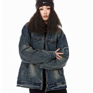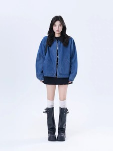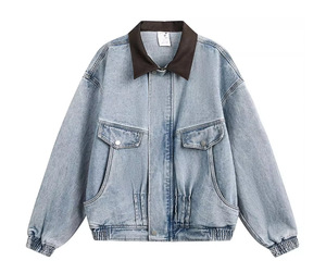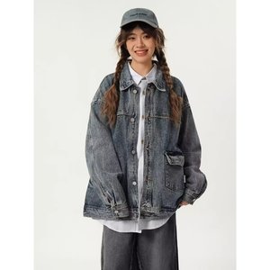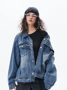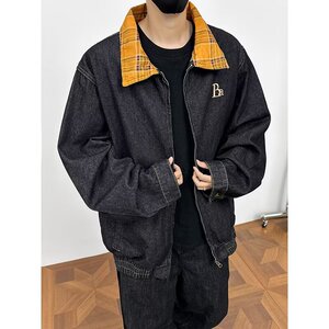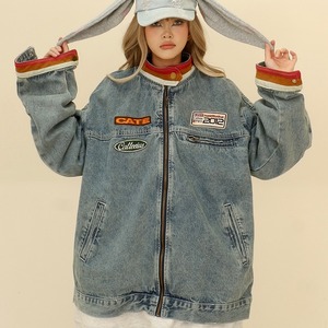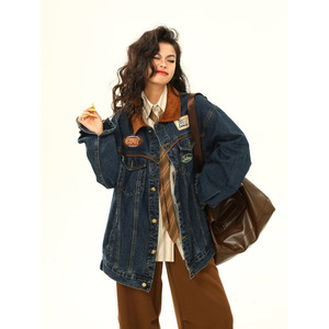 2024年春秋アメリカのレトロな学院風はデニムのコートをつなぎ合わせます。