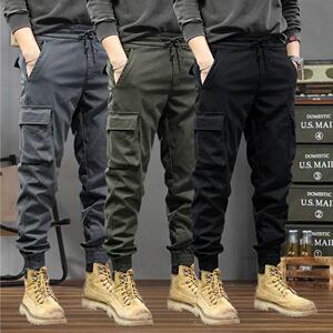 男性工装ズボン2025夏の男性の足のファッションブランドの韓国版男性の多ポケット春秋カジュアルズボンはゆったりしています。