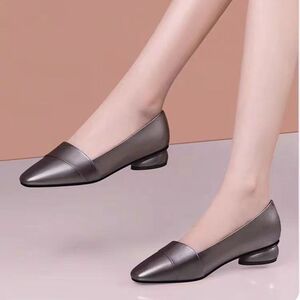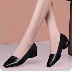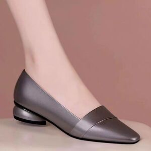 2025春と秋の新型ローヒールの角の浅い口の太さと気質のハイエンドの女性靴に合わせて、フラットシューズの女性を合わせます。