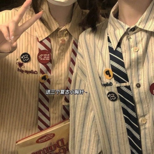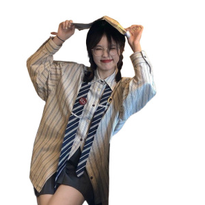 ネクタイのストライプのシャツの女性の秋の新型の学院の風はゆったりしています。