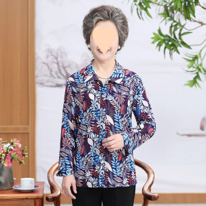 中高年の婦人服の薄い氷のシルクのシャツの長袖の女性の夏の新型のおばあさんはゆったりとしたカジュアルな大きいサイズの上着を詰めます。