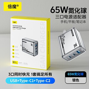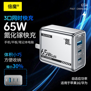 【実力ブランド】倍魔65w窒化ガリウム充電ヘッド三合一急速充電器は華為リンゴを適用する