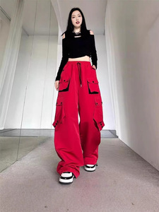 赤い工装ズボンの女性2025の新型はやせています。