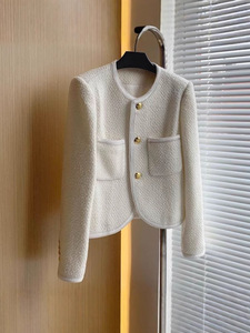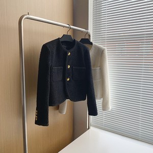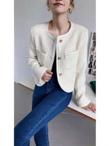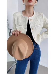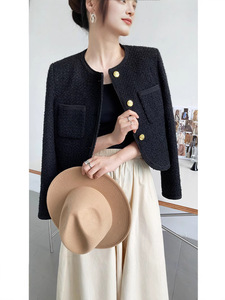 2025年と秋の新型高級感の名媛小香風の短いタイプの小さいコートの女性の小さい背の短いタイプの粗い花の上着