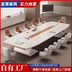 軽豪華現代シンプル高級塗装会議テーブル長テーブル大型会議訓練商談事務テーブルと椅子の組み合わせ