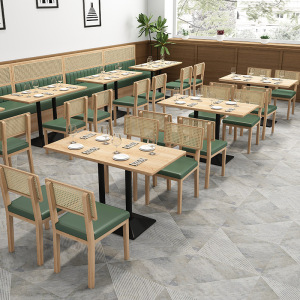 実木レストラン編藤卡座ソファー東南亜風テーマ西レストランミルクティー店スイーツ店テーブルと椅子の組み合わせ