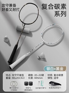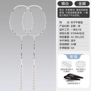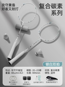 シルバーホワイトダブルラケット[コンポジットカーボン/3Uエントリー/台湾ファイバー耐球性ボール無料*3/ハンドグルー]