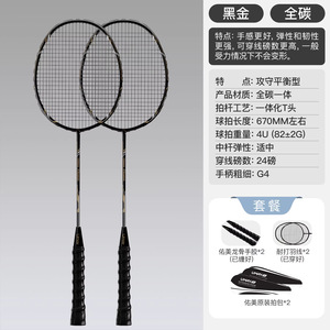 ブラックゴールド*2 [超軽量フルカーボン/5Uプロフェッショナル/耐久性バドミントン*3/365日間交換保証。