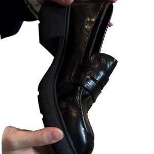水洗い牛革 ~ レトロな本革の厚い底の小さい靴の女性の丸い頭の太い靴の英倫風の足は楽福の靴を漕いでいます。