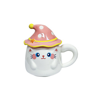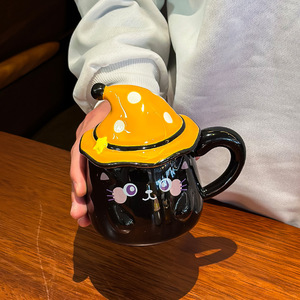 帽子クリエイティブかわいい猫マグカップ蓋付き幽霊カップ女子陶磁器高颜値漫画家庭用コップ