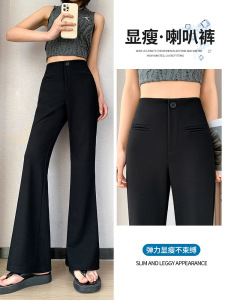黒いラッパのズボンの女性は腰が高くて痩せています。