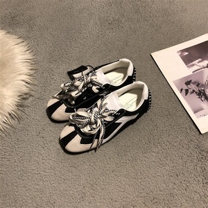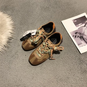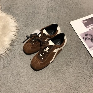 砂の皮の松の餅の黒色の徳の訓練の靴の女性の2025春の新型の丸い頭のひもの百合のカジュアルな阿甘靴