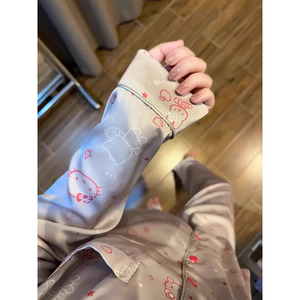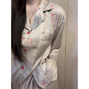 かわいいケイティのパジャマ女性の夏の高級なサテンの氷のシルクの肌の涼しさの長袖の薄い家庭服のスーツ