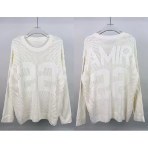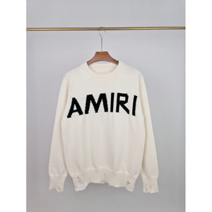 対外貿易卸売りAMIRIトレンドアルファベットロゴジャカード流蘇破壊破穴ゆるい風フード付き丸襟セーター
