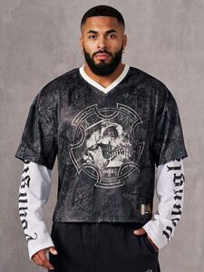 YOUNGLAアメリカン潮牌超大型tシャツ男性運動フィットネス速乾通気性大メッシュプリント半袖上着