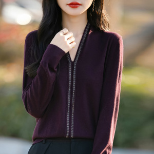 卸売りの精紡のウールのアイロン掛けのvネックのニットの底のシャツの女性は色にぶつかって外に着てゆったりしていてやせている気質の2025対外貿易を現します。
