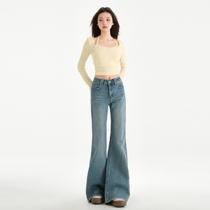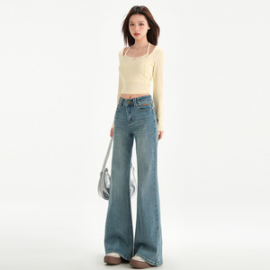 レトロなマイクロラッパのジーパンの女性2025春の新型のハイウエストの弾力性はやせています。