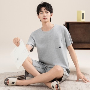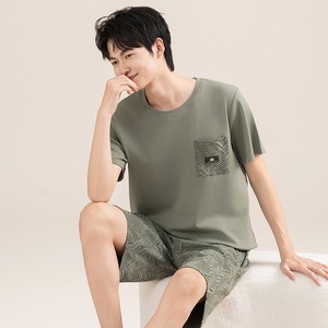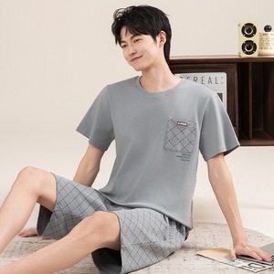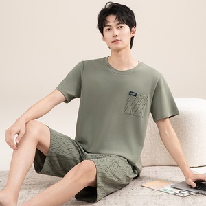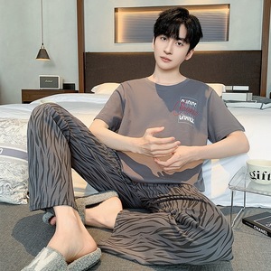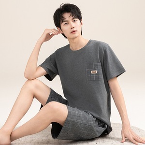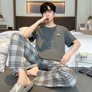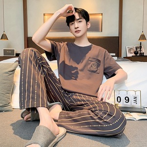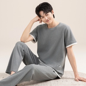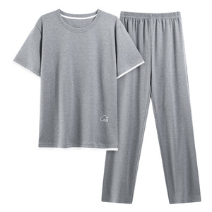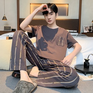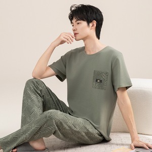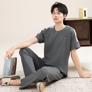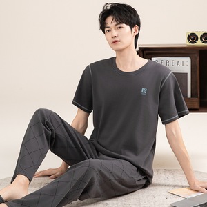 2025新型パジャマ男性夏純綿半袖長ズボンの薄いタイプのカジュアルな家庭服綿セット