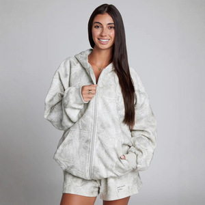 アマゾン欧米の国境を越えた独立駅の3dプリントの新型男女モデルのカーディガンのジッパーと帽子のガードルの大きなポケット