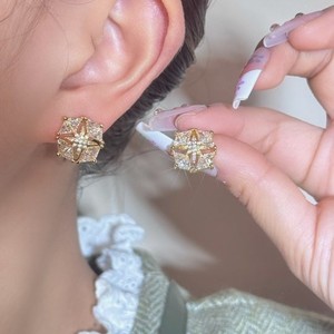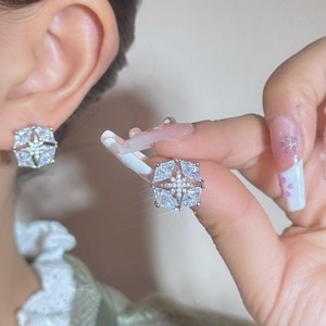 軽い豪華なダイヤモンドの三角形の交差のピアスの韓国系の高級感の精巧な雪のイヤリングのファッションの独特な設計の耳