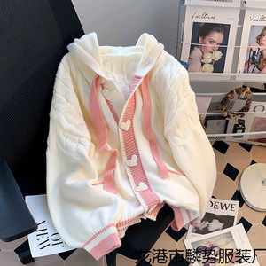 怠惰な風と帽子のセーターのコートの女性は秋冬に着てデザイン感がゆったりしています。