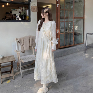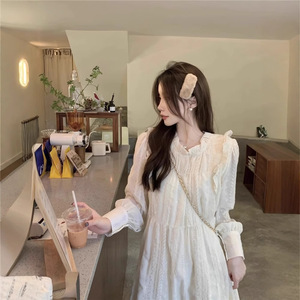 優しい風レースワンピース女装春秋2025新型の仙人のベルベットが厚くて暖かいスカート