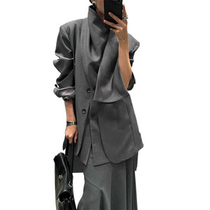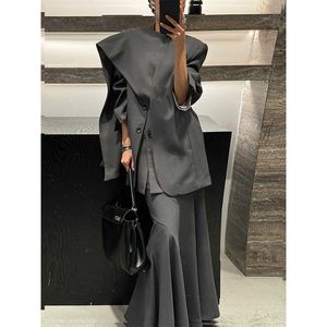秋の新しいデザインのスーツのコートの魚尾のスカートのベストの3つのセットの女性