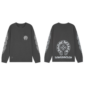新商品のファッションブランドのクロtシャツの爆発的な高品質の長袖の丸首の純綿の男女の金のゆったりしている百合の現物の卸売り