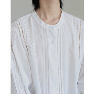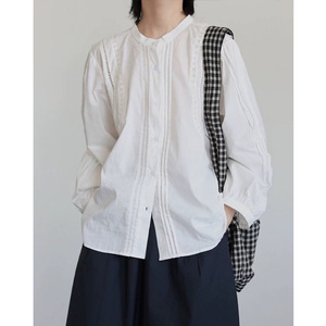フランスの白い透かし彫りのシャツの女性2025秋の新型の大衆はゆったりしていて、やせている独特なシャツを現します。
