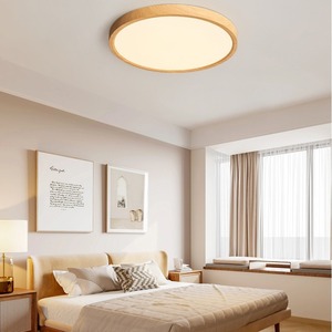 フルスペクトルの目の保護機能付き天然木天井照明、隙間のない円形ルームランプ、書斎、子供部屋、寝室用スマートランプ