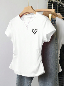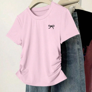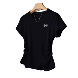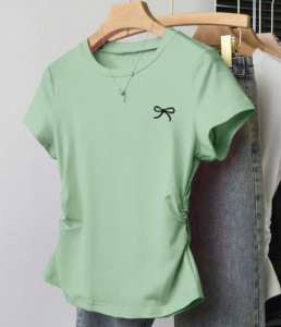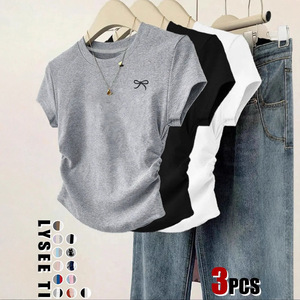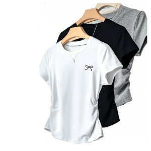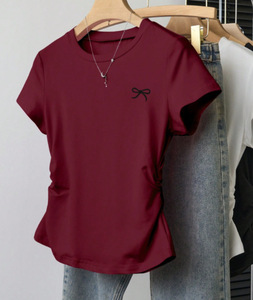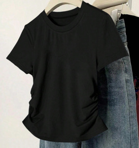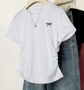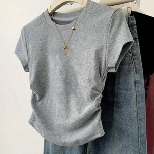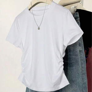 クロスボーダー右肩ラウンドネック半袖Tシャツ、大きいサイズ、少し太め、2025年夏新作、ホットガールスリムフィットトップス、トレンディブランド