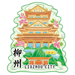 広西チワン族自治区柳州市古鎮文廟田螺粉景勝地文化的で創造的な木製金属磁気観光用冷蔵庫マグネット卸売