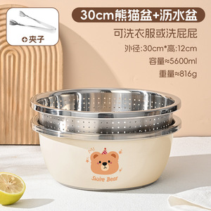 (304ステンレス) 30cmクマ洗面器+30cm水切りカゴ(クリップ付)