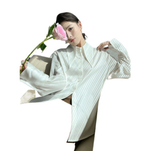 ほろ酔いフランスの高級感のあるシャツの女性春秋垂順のシャツは特別に小さい大衆の洋風の鋭い襟の上着を重ねて着ます。