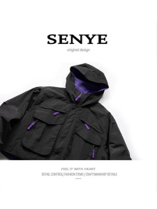 アメリカのレトロなフード付きのジャケットは男女多ポケットの短いタイプです。