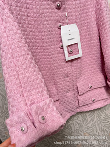 南油25春新作 シャネル風 ライトピンク チェック柄 七分袖 シングルボタン ツイードウールジャケット 春新作