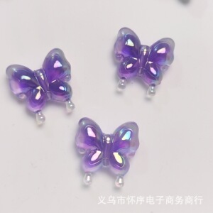 Uvカラーアクリルゼリー珠中珠蝶縦穴ビーズDIY手作り携帯電話チェーン車掛けアクセサリー部品