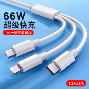 66W急速充電データ線三合一白色TPE充電線車載汎用携帯電話はアップル華為に適用される