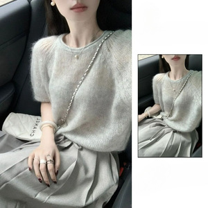 早春にはドーパミンの新型2025韓系の優しい風の柔らかいモチモチのセーターの馬海毛の半袖の上着を着るのが流行っています。