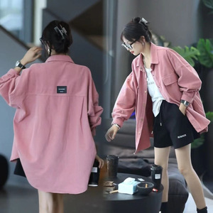 大きいサイズの太ったmmのゆったりした怠惰な風のシャツの女性の秋の百合の上着のカーディガンの韓国版のファッションの洋風のシャツのコート