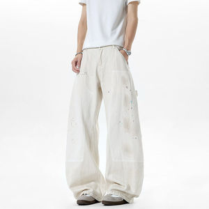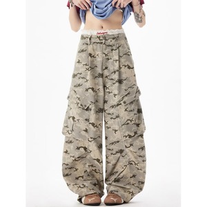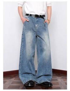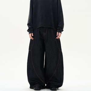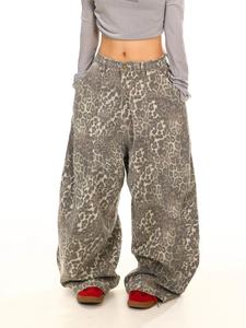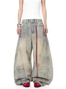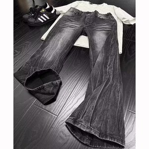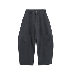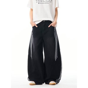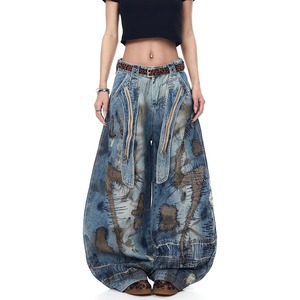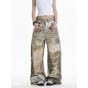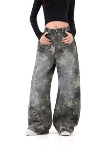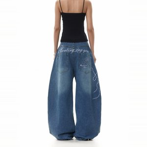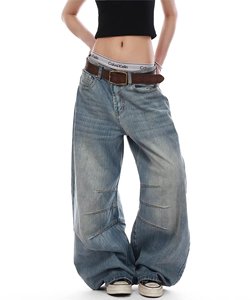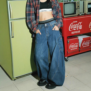 レトロな大きなポケットの曲がり角のジーパンの女性の秋の新型の高い街のデザイン感はゆったりしていて、やせているストレートの広腿のズボンが現れます。