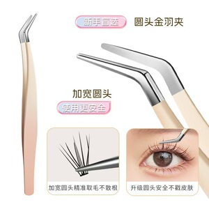 伪のまつげピンセット初心者イーグル口クリップまつげピンセットラウンドヘッド金羽クリップ高精密初心者入门ツール